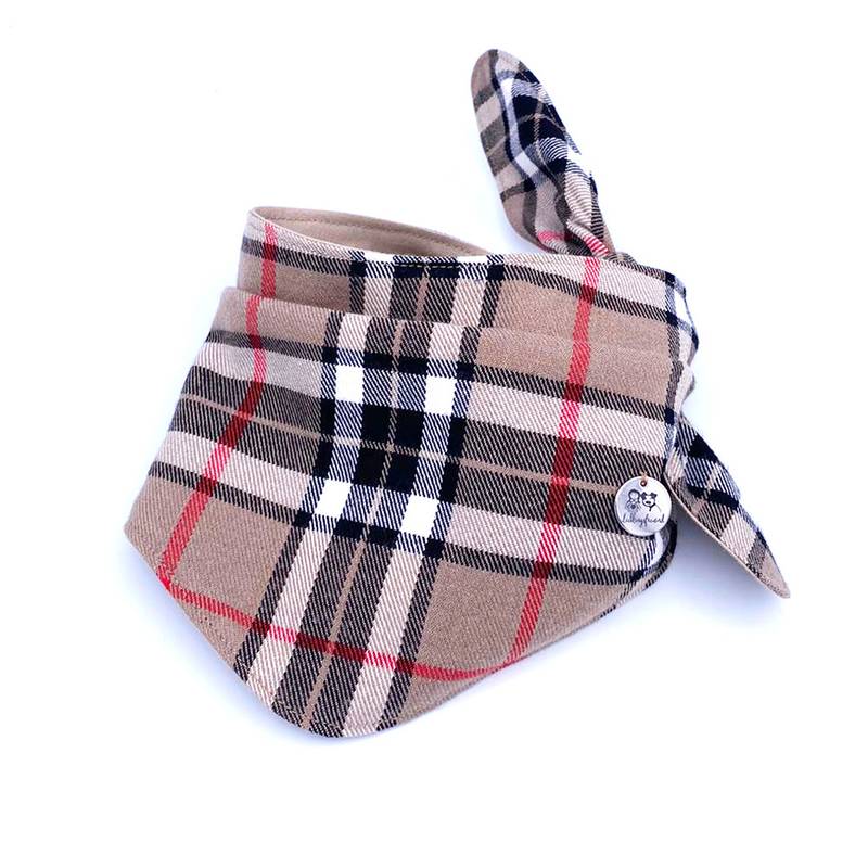 Das Hundebandana mit klassischem Karomuster in beige, schwarz, weiß und rot ist garantiert kein Faux-Pas!
