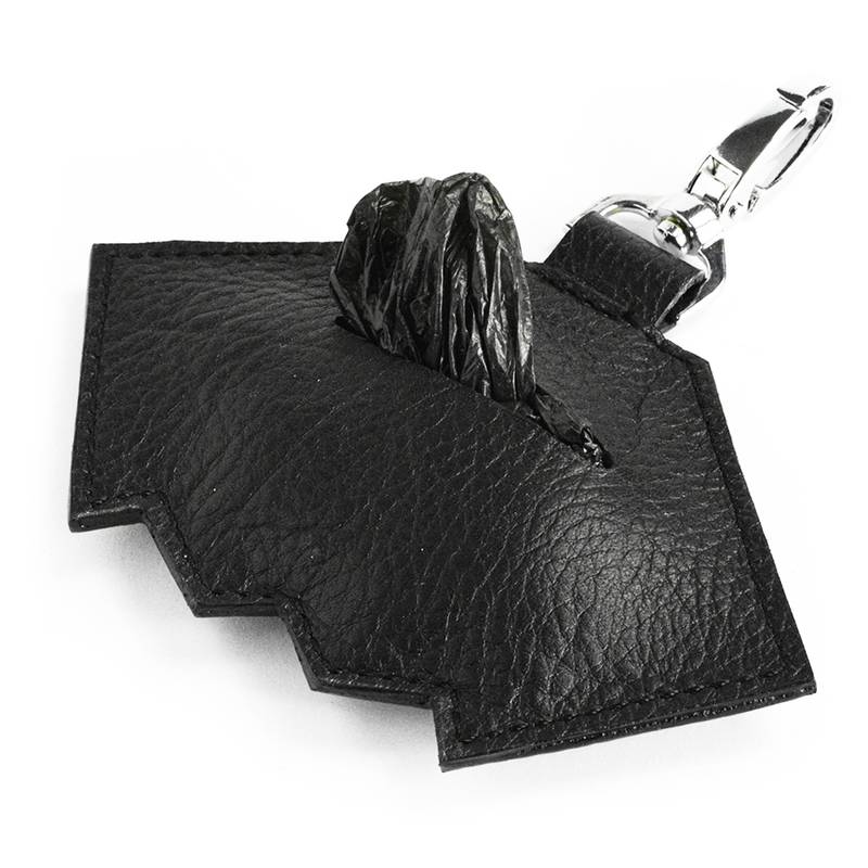 Der Kotbeutelspender MINNI aus Leder in schwarz – für Dinge, die nun einmal sein müssen.