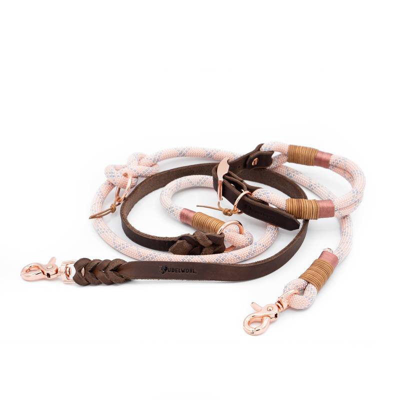 Verstellbare Leine PASTELL ROSA aus Kletterseil und Leder