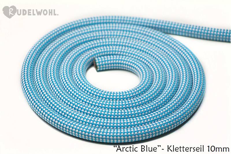 Aus unserem robustem Kletterseil "Arctic Sea" in 10mm Stärke in aufwendiger Handarbeit angefertigt.