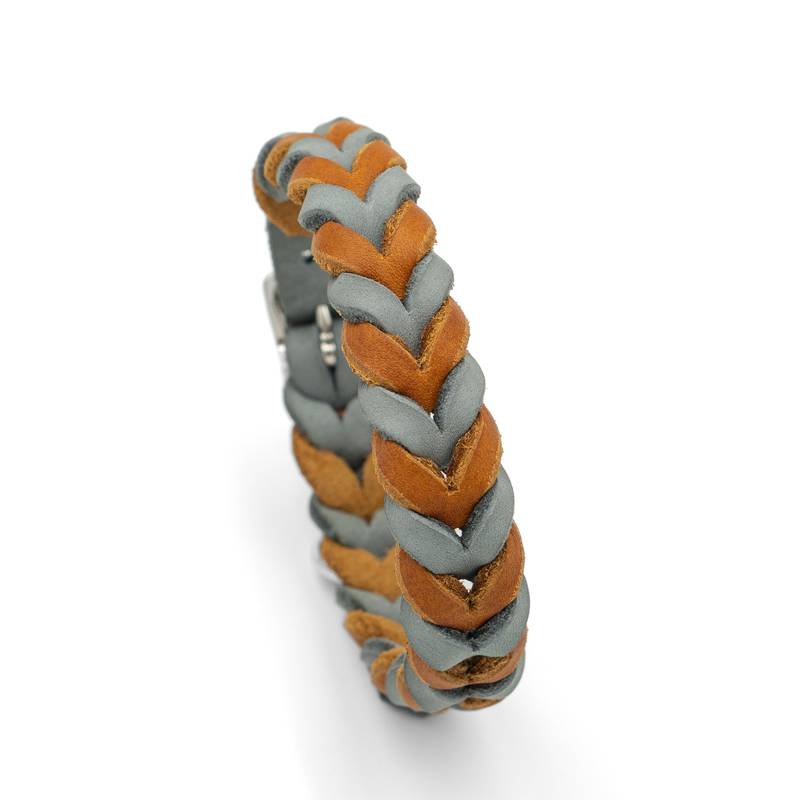Verstellbares, zweifarbiges Halsband aus handgeflochtenem, butterweichem Fettleder.
