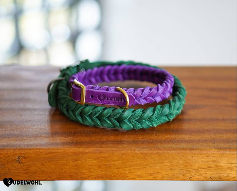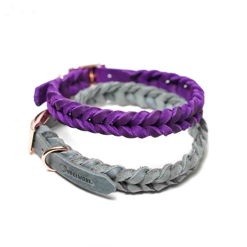Das Halsband Modell "LISSABON" ist ein verstellbares, komplett von Hand geflochtenes Halsband aus butterweichem Fettleder.
