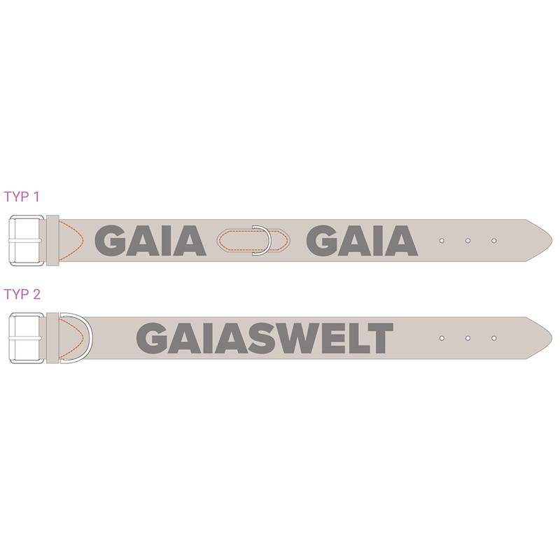 Typ 2 mit Ring auf der Seite der Schnalle – für lange Namen oder aber auch extreme Leinenzieher. Beide Varianten haben eine Breite von 4cm.