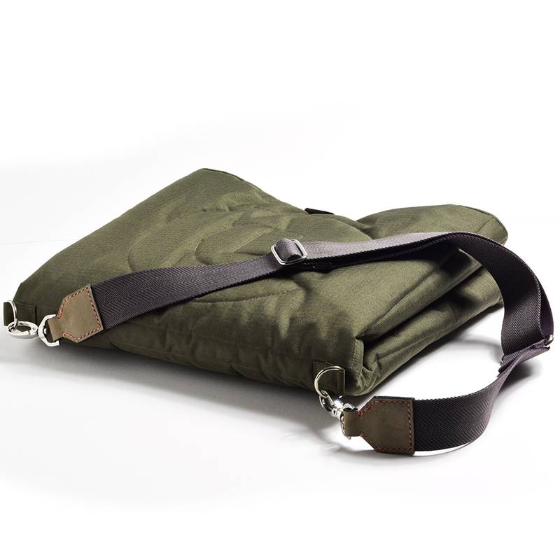 Der Taschengurt ist aus hochwertigem Doubleface-Gurtband und zur Lasche passendem, greigefarbenem Rindsleder gefertigt. Der Gurt ist individuell in der Länge verstellbar, wird mittels Karabinern an der Reisedecke befestigt und kann ebenfalls ganz einfach abgenommen werden. Einen besonderen Akzent setzt die Sattlernaht in Flieder.