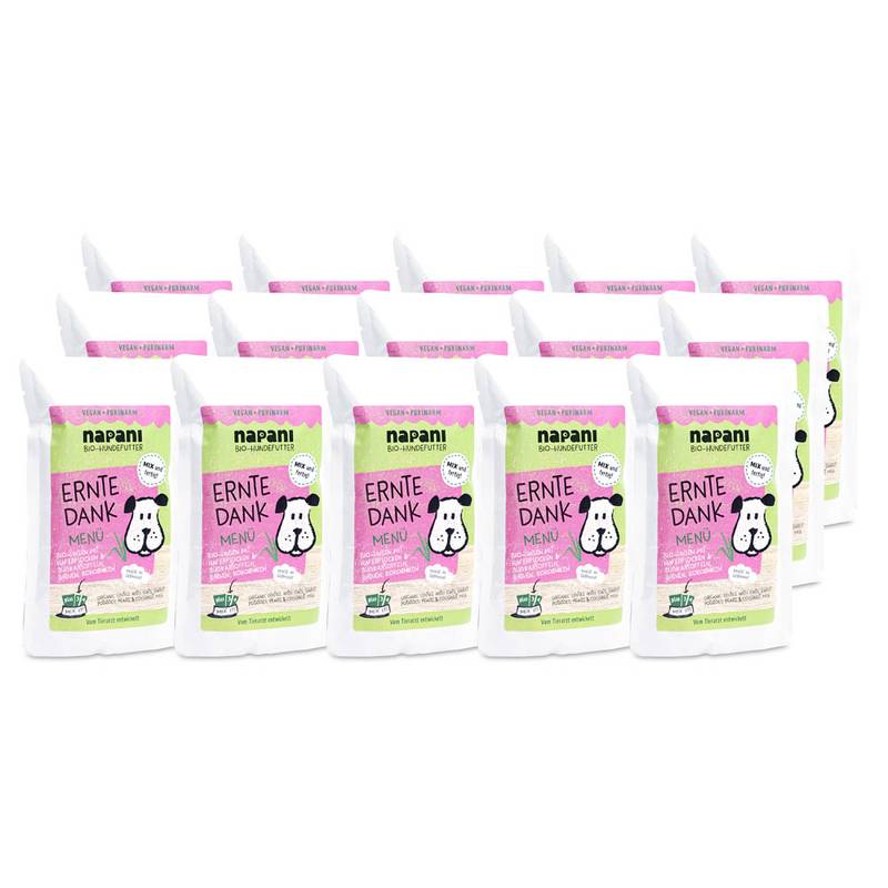 Gemeinsam mit unserer Tierärztin haben wir napanis dieses ausgesprochen leckere vegane Menü für Ihren Hund entwickelt. Mit Zutaten in höchster Qualität und hergestellt in Deutschland.