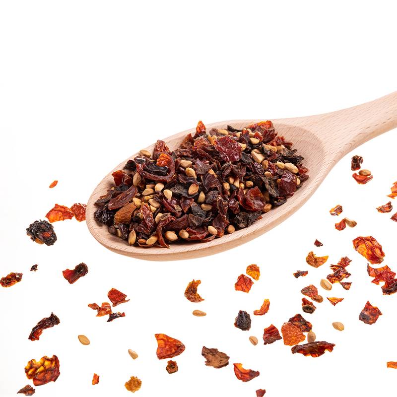 100 % ganze Frucht der Hagebutte (Rosa canina) geschnitten. Aus kontrolliert biologischem Anbau. Ohne Zusatz- oder Konservierungsstoffe!
