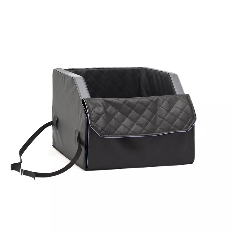Das Polster-Hundebett für den Vordersitz 'Travellino' in klassischem Schwarz mit grauen Akzenten lässt keine Wünsche offen – weder beim Komfort für den Hund noch bei der Funktionalität für seinen Menschen.
