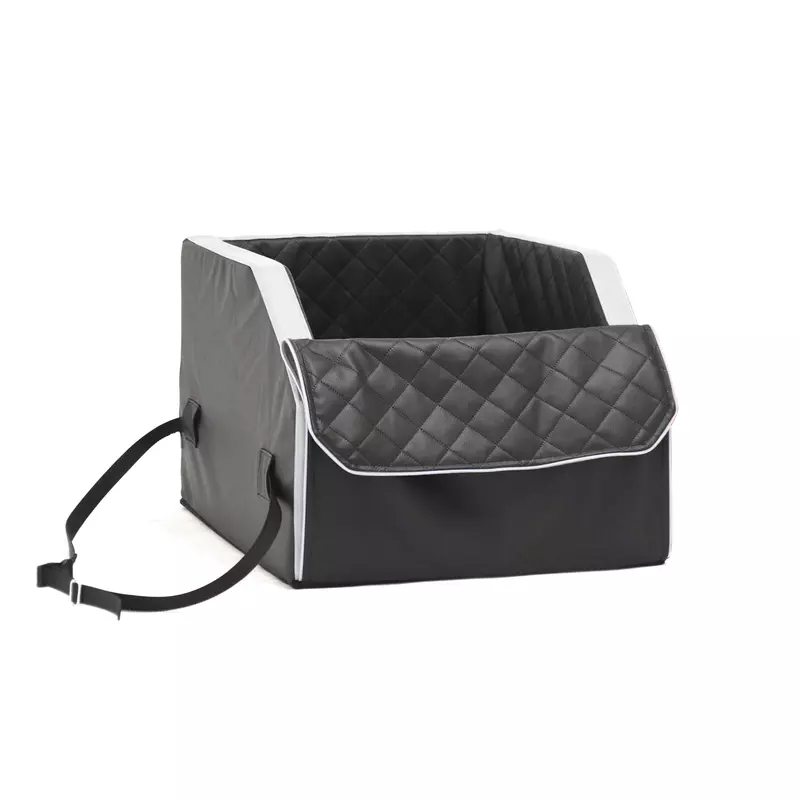 Das Polster-Hundebett für den Vordersitz 'Travellino' in klassischem Schwarz mit weißen Akzenten lässt keine Wünsche offen – weder beim Komfort für den Hund noch bei der Funktionalität für seinen Menschen.