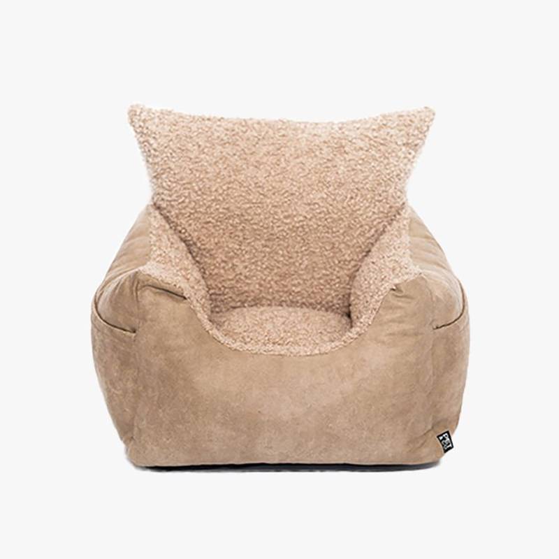 Auto-Hundebett für kleine Hunde • Teddyfell + Kunstleder • Harry beige