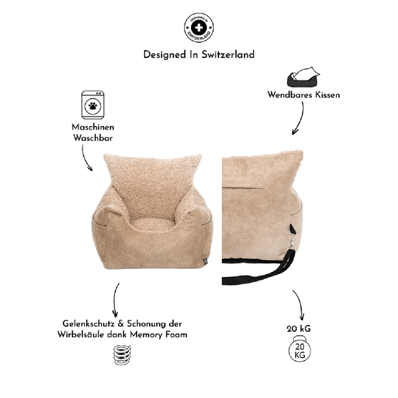 Denn 'Harry' bietet Deinem Hund einen Luxus-Kuschelplatz im Auto: innen rundum mit anschmiegsamem Teddyplüsch bezogen, fluffig weich gepolsterte Ränder zum Kopfauflegen oder Nase-Vergraben und eine Liegefläche aus hochwertigem Memory Foam – mehr kann sich hund kaum wünschen.