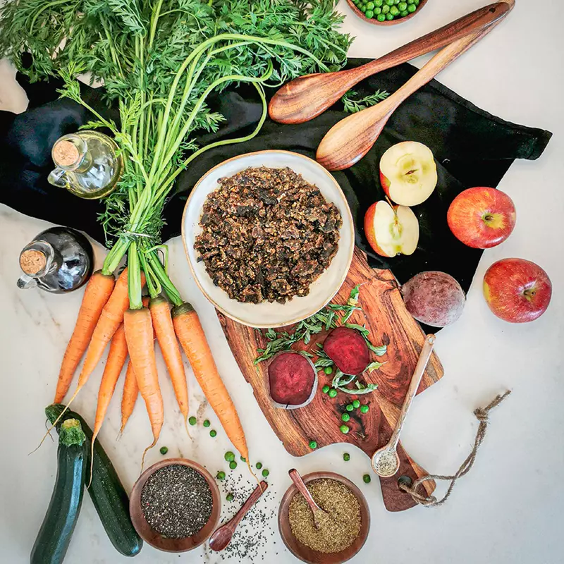 20 % getrocknetes Gemüse, Obst und Kräuter: