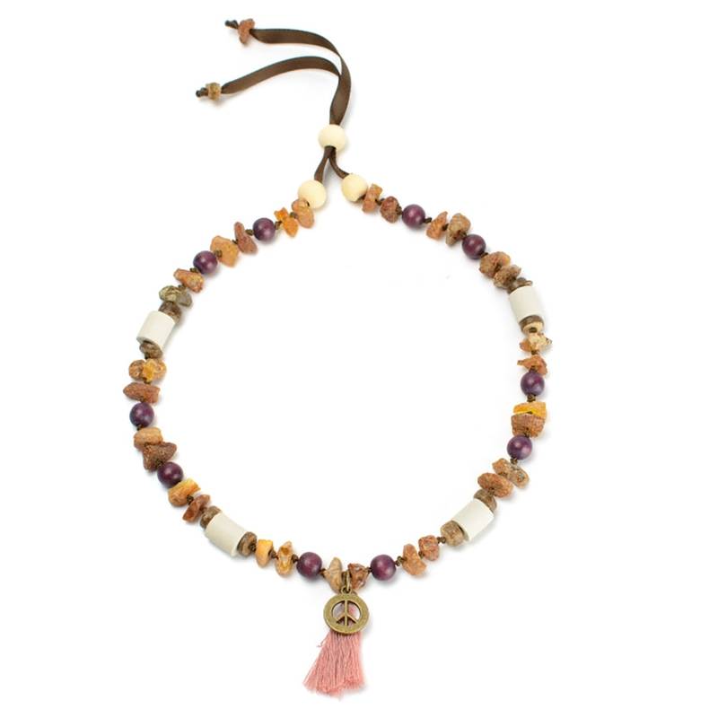 Schmuckanhänger und farblich auf die Perlen abgestimmte Quaste machen den Beachlook perfekt – wenn man's mag. Ihr bekommt das EM-Keramik-Bernstein-Schmuckhalsband auch ganz pur.