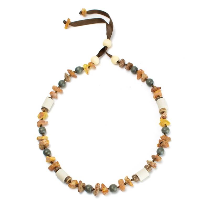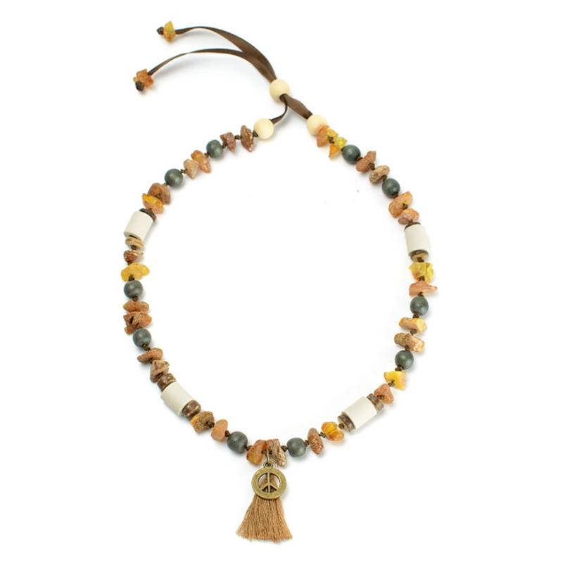 Schmuckanhänger und farblich auf die Perlen abgestimmte Quaste machen den Beachlook perfekt – wenn man's mag. Ihr bekommt das EM-Keramik-Bernstein-Schmuckhalsband auch ganz pur.