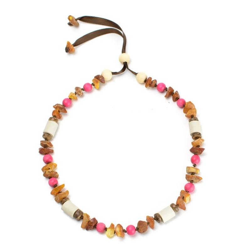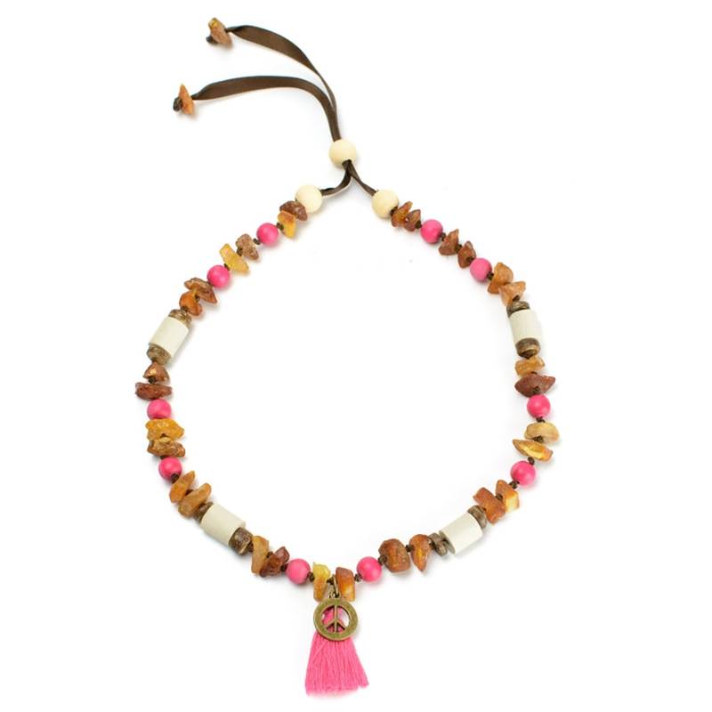 Schmuckanhänger und farblich auf die Perlen abgestimmte Quaste machen den Beachlook perfekt – wenn man's mag. Ihr bekommt das EM-Keramik-Bernstein-Schmuckhalsband auch ganz pur.