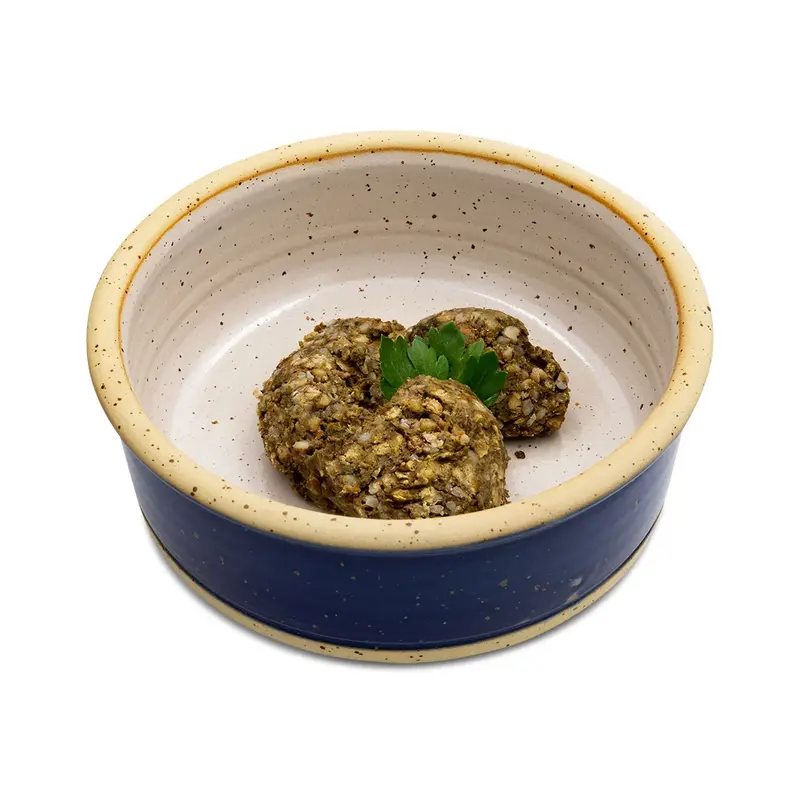 Dieses vegane Menü bietet Deinem Hund eine ausgewogene Ernährung – ganz ohne tierische Produkte. Es kann zur täglichen Ernährung* verwendet werden oder auch im Rahmen eines "CO2-Entlastungstags" in der Woche (denn wir wissen: die Nutztierhaltung ist für einen großen Teil des weltweiten CO2-Ausstoßes verantwortlich).