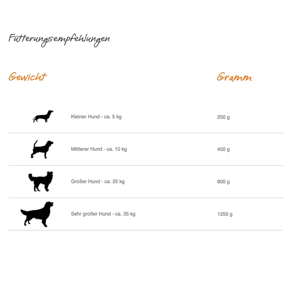 20 kg Körpergewicht ca. 700 g Futter
