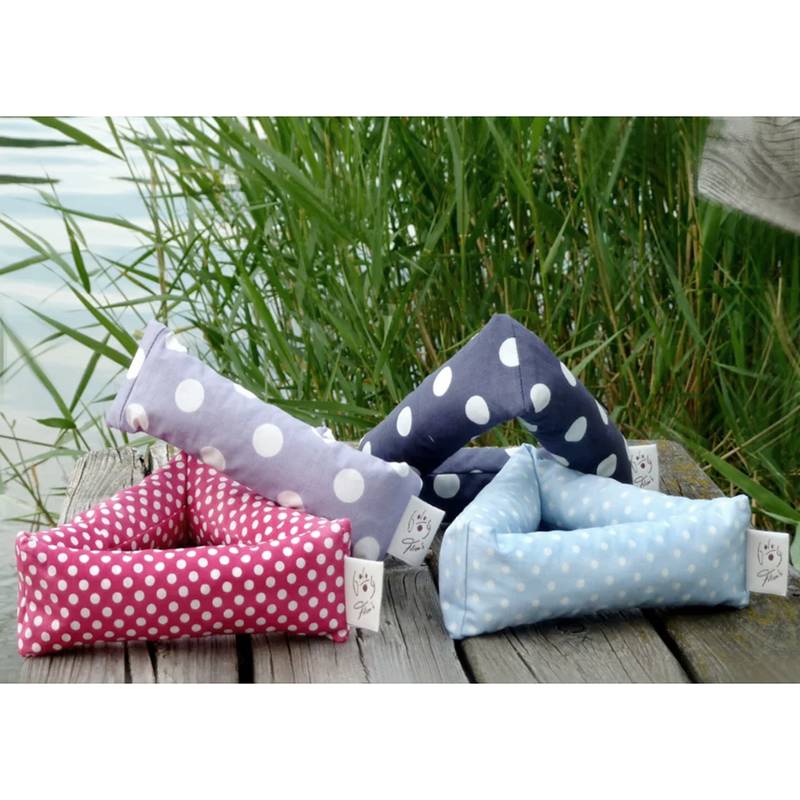 Das schwimmfähige Dreieck aus zwei Lagen wasserabweisend beschichteter Bio-Baumwolle mit einer Füllung aus Naturlatexflocken bringt den perfekten Sommerspaß – beim Apportieren aus dem Wasser oder draußen.