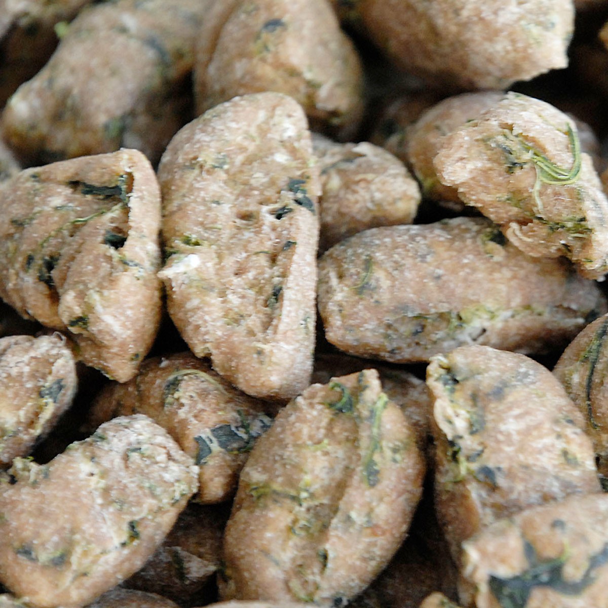 Bio-Dinkelmehl, Bio-Hackfleisch, Bio-Spinat, Bio-Ei und Bio-Distelöl