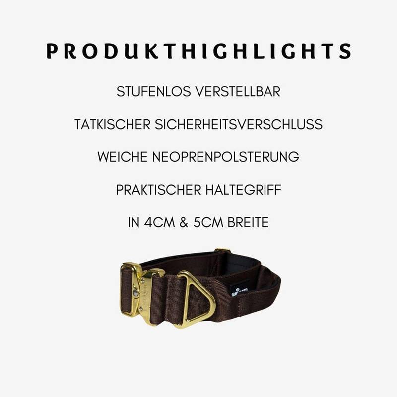 Breites Tactical Halsband mit Griff • braun | gold