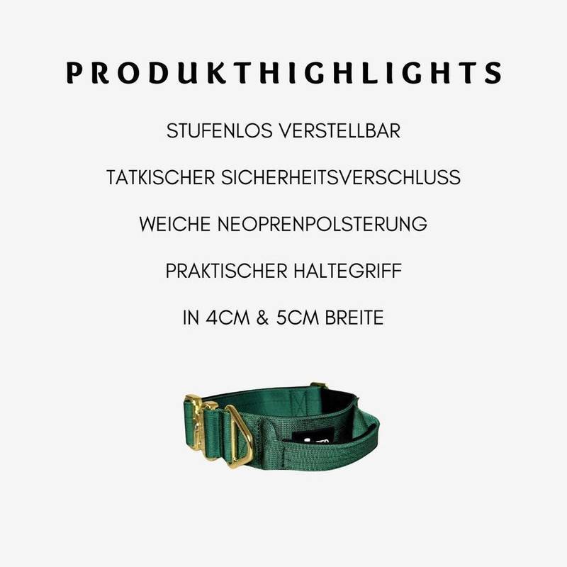 Breites Tactical Halsband mit Griff • dunkelgrün | gold • gepolstert