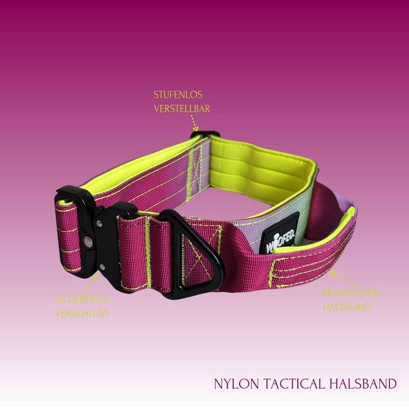 Breites Tactical Halsband mit Griff • gepolstert • Lime Wine
