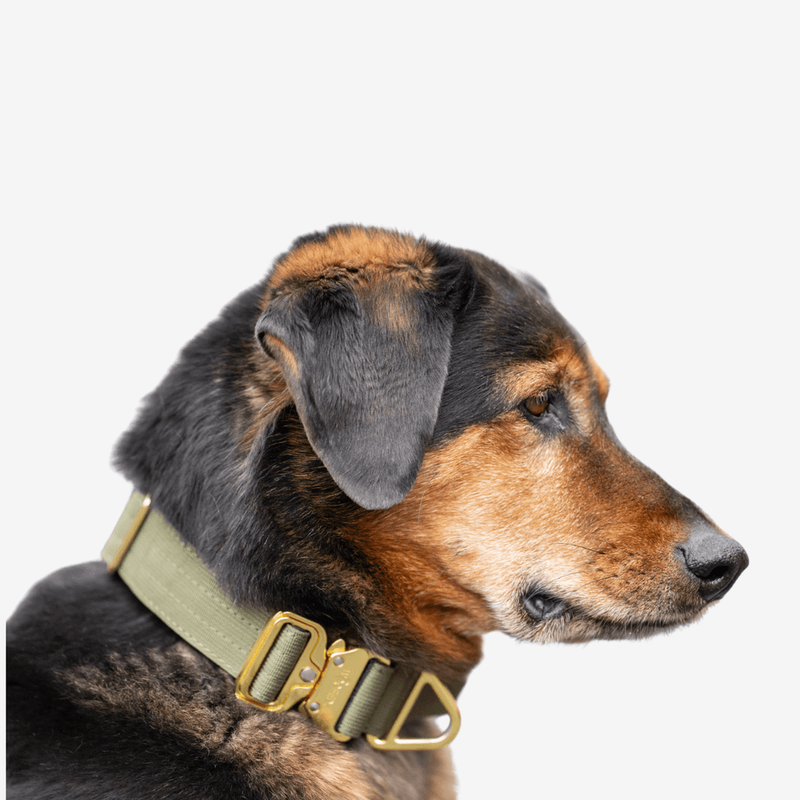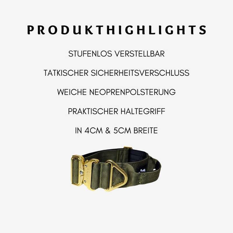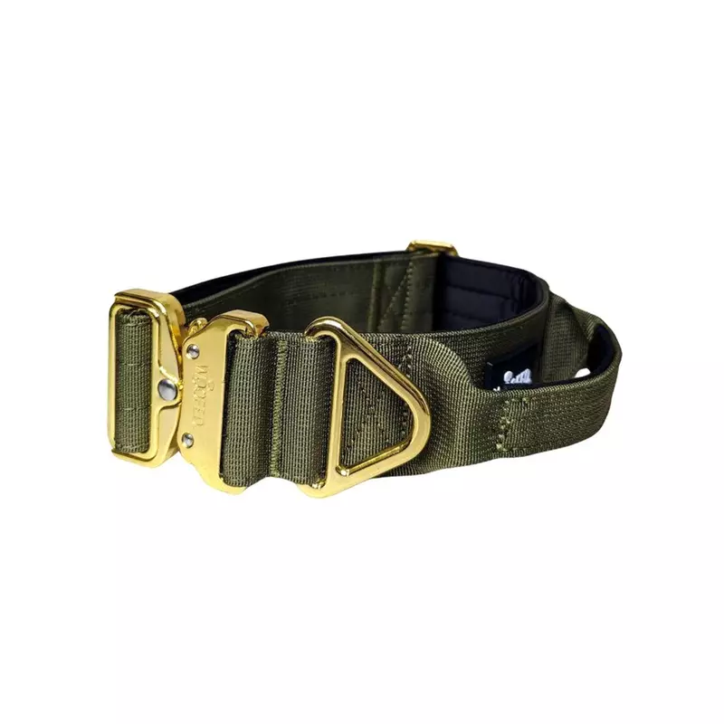 Breites Tactical Halsband mit Griff • oliv | gold • gepolstert