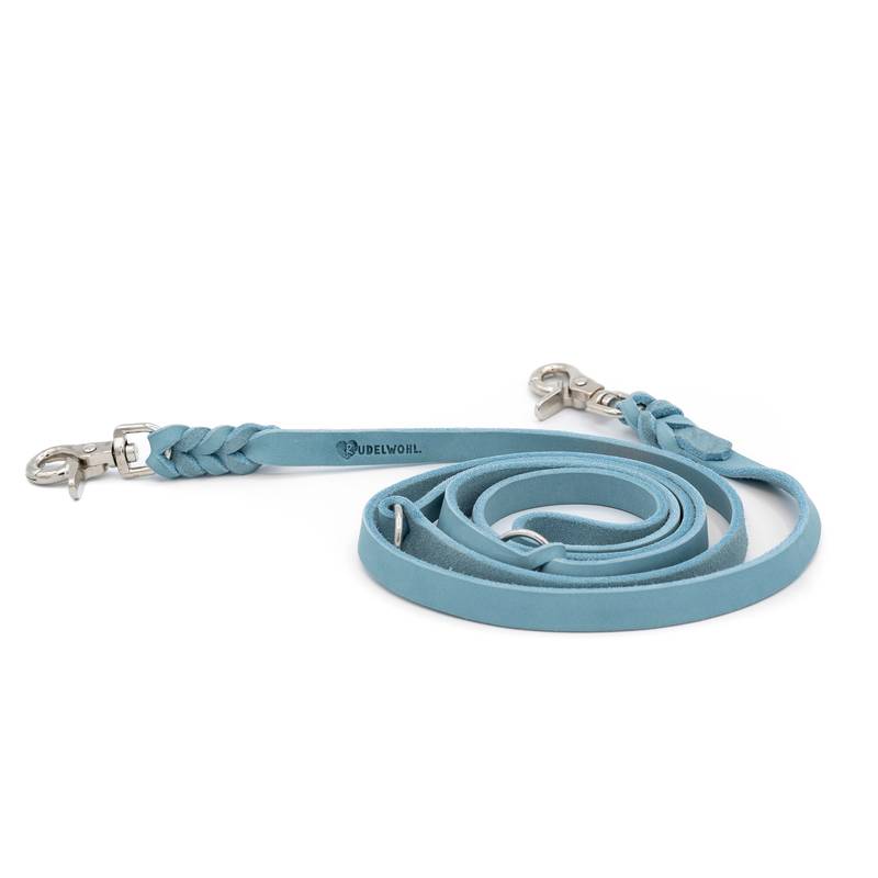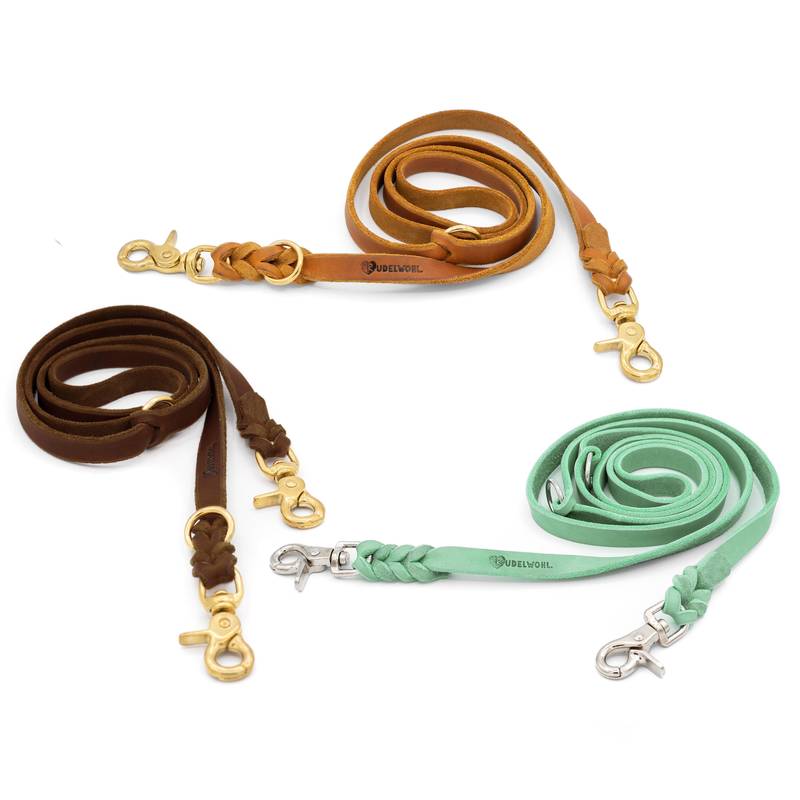 Die 2-fach verstellbare Lederleine bietet dir die Möglichkeit die Länge der Leine in 2 verschiedenen Varianten einzustellen. Beide Enden sind mit einem Karabiner versehen. Die Ringe zum Einhaken der Karabiner lassen sich bei der Lederleine nicht verschieben und sind fest eingeflochten.