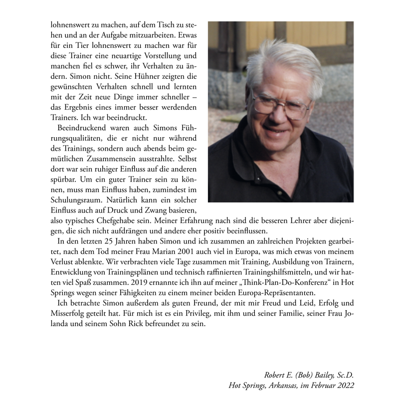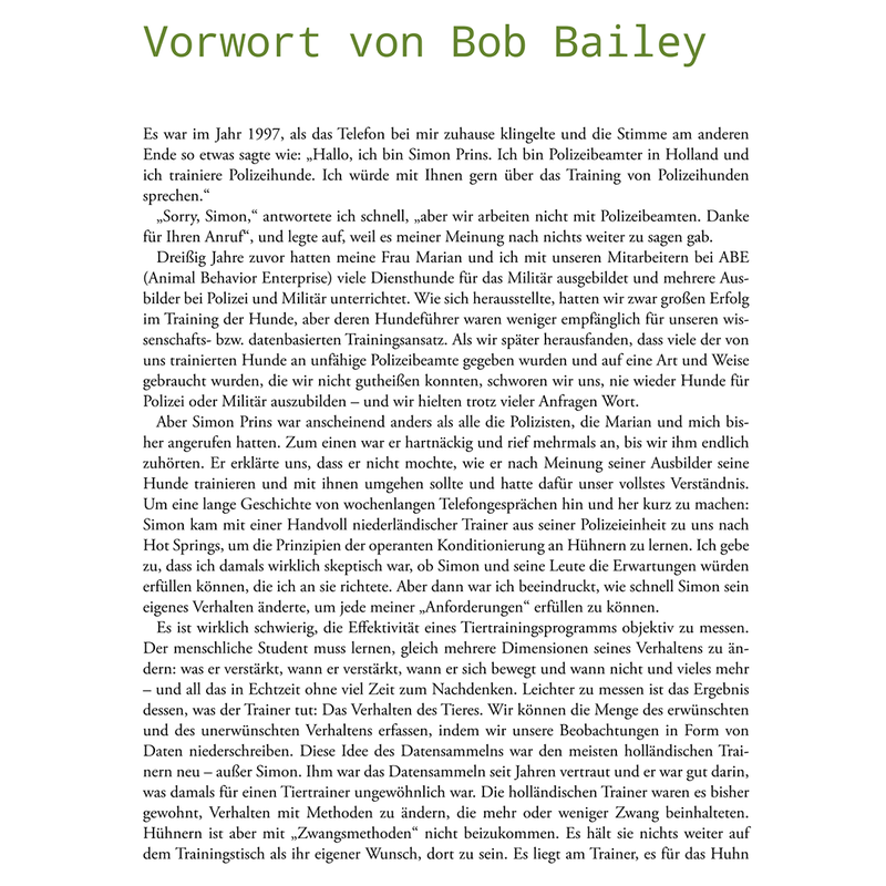 Jahrelang reiste Simon Prins um den Globus, um von den Besten zu lernen. Besonderer Einfluss kam dabei von Bob Bailey, den er heute als seinen geistigen Mentor bezeichnet. In diesem Buch hat er seine ganz persönliche Reise in die spannende Welt der Verhaltens- und Lernforschung festgehalten und lässt den Leser an seinen Erfahrungen und Erkenntnissen teilhaben, zu denen vorübergehende Fehlschläge ebenso gehörten wie großartige Erfolge.