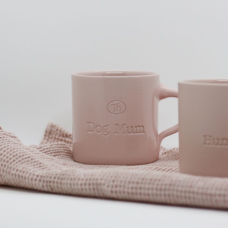 Die Dog Mum Tasse aus Keramik in zartem Altrosa.