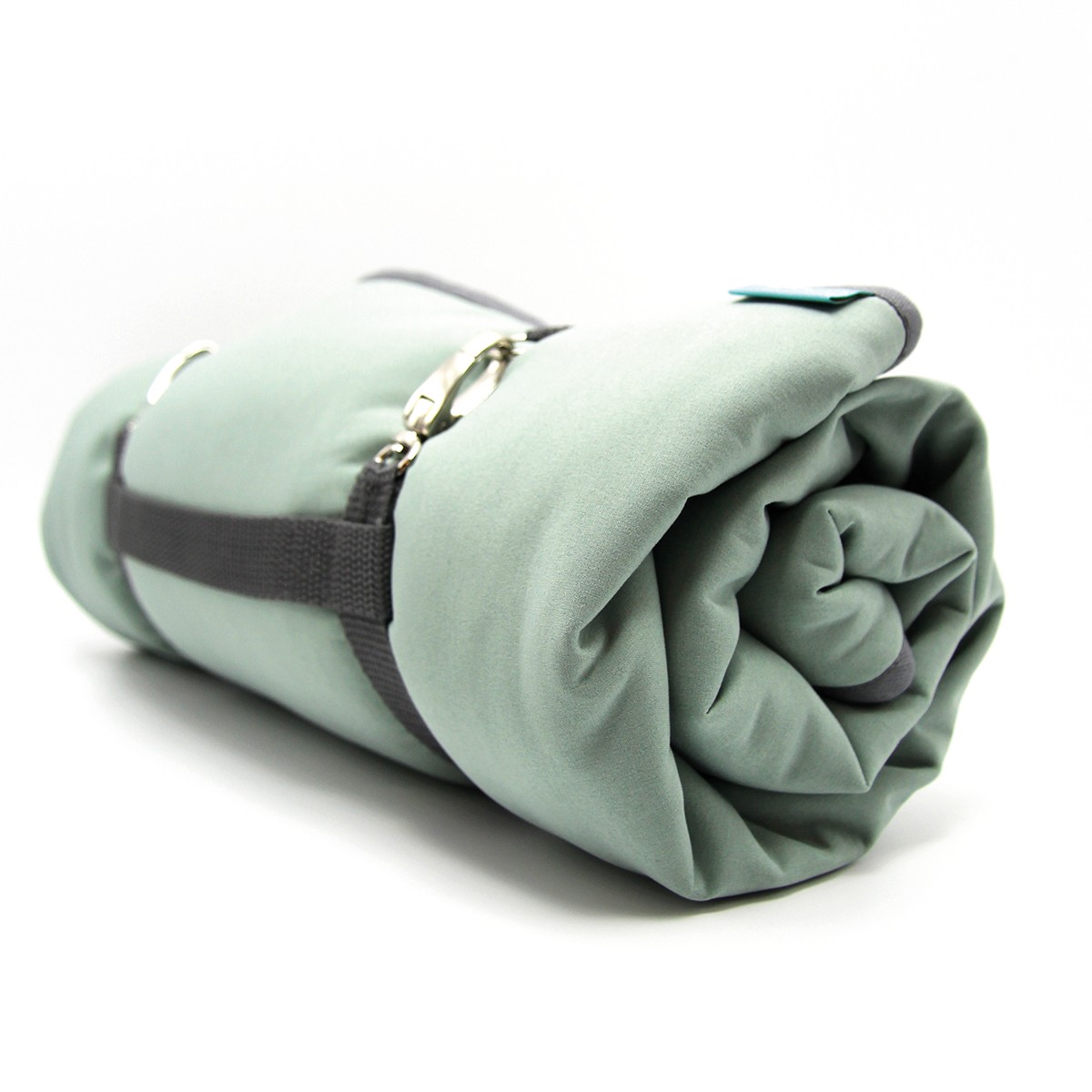 Die Reisedecke ist klein und handlich und passt in jede Handtasche - sie werden platzsparend zusammengerollt und mit einem Gurtband mit Tragegriff zusammgengehalten.