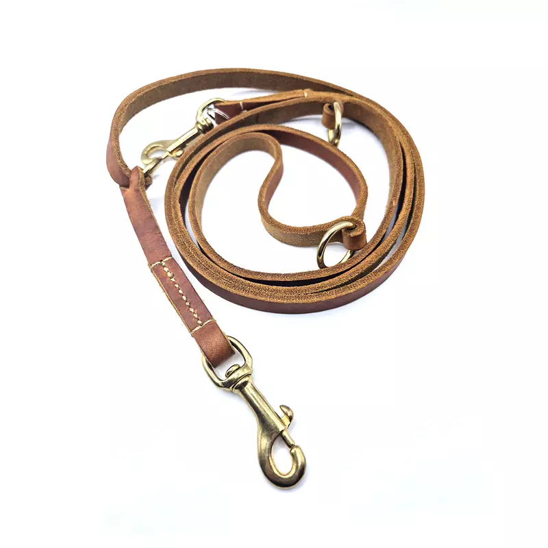 Dreifach verstellbare Hundeleine aus Fettleder, konfigurierbar
