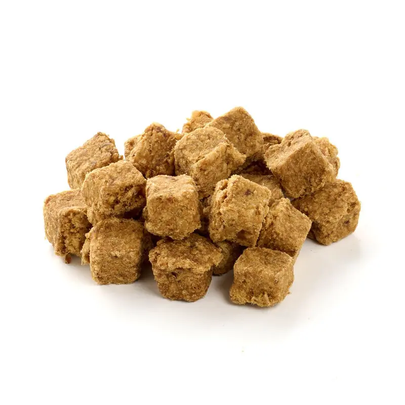 Für Natur-Puristen: die Würfel-Leckerli werden aus dem Fleisch geschnitten bzw. aus kleineren Stückchen in Form gepresst und schonend getrocknet. Komplett ohne Zusatzstoffe und natürlich getreidefrei/ glutenfrei.