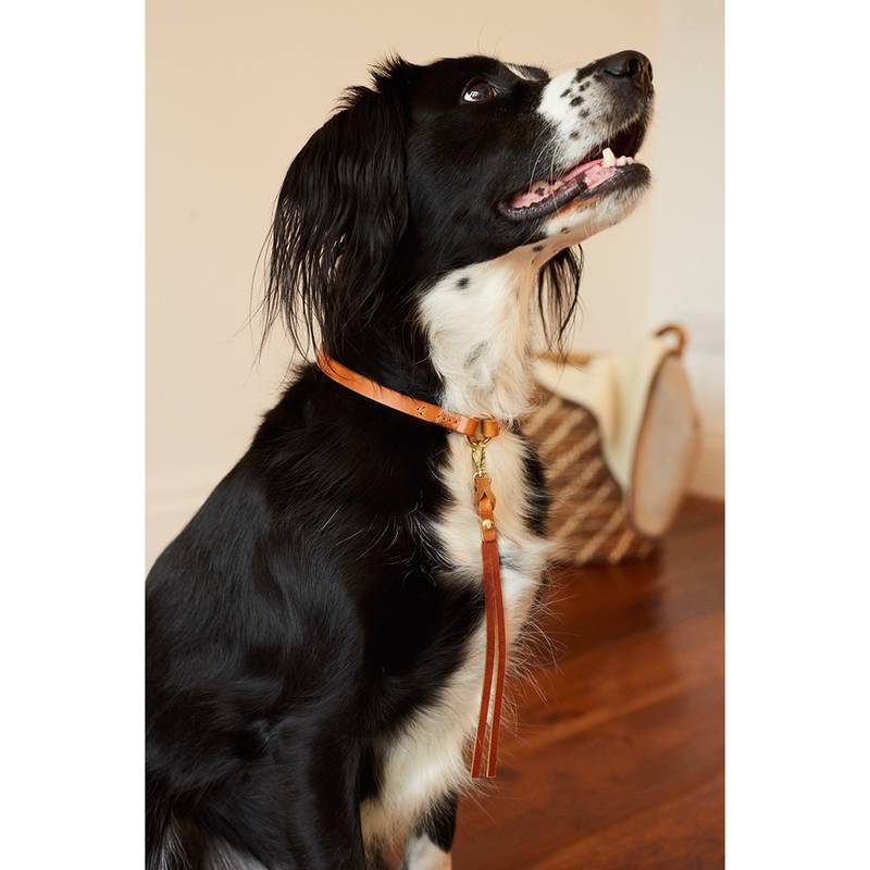 Ein exklusives Markenhalsband aus Leder in chestnut