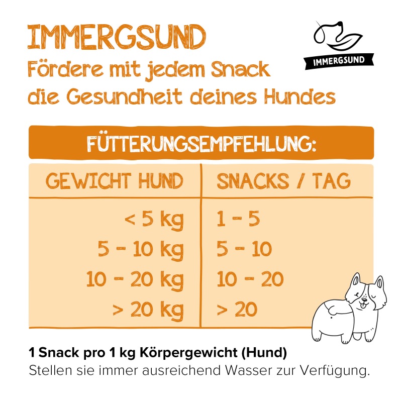 Die Immergsund Funktionssnacks für Hunde sind unwiderstehlich lecker, halbfeucht und verteilbar – und damit als winzig kleine Leckerli perfekt fürs Training und Schnüffelspiele geeignet. Gleichzeitig versorgen sie Deinen Vierbeiner mit einem patentierten Wirkstoffkomplex, mit dem Du seine Gesundheit gezielt unterstützen kannst.