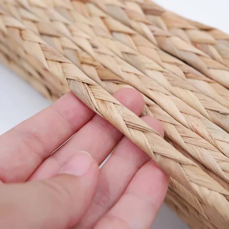 Wasserhyazinthe ist ein schnell nachwachsendes Naturmaterial. Die getrockneten Stiele werden in aufwändiger Handarbeit geflochten und sind wegen ihrer angenehmen Haptik und Optik auch im Interior-Bereich sehr beliebt, wo sie unter anderem als robuste Teppiche zum Einsatz kommen.