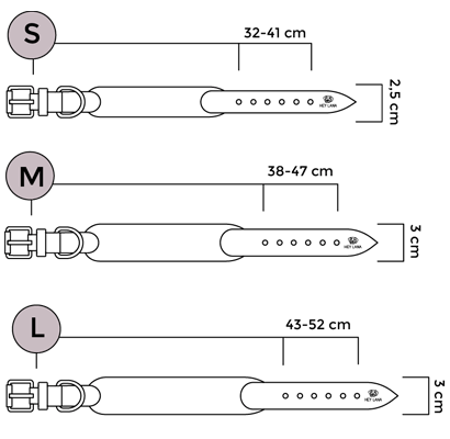 Größe S • Halsumfang 32 – 41 cm • Breite Lederriemen 2,5 cm • Breite gesamt 3,5 cm