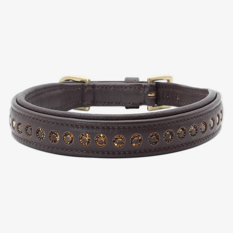 Gepolstertes Lederhalsband DIAMONDS • coffee