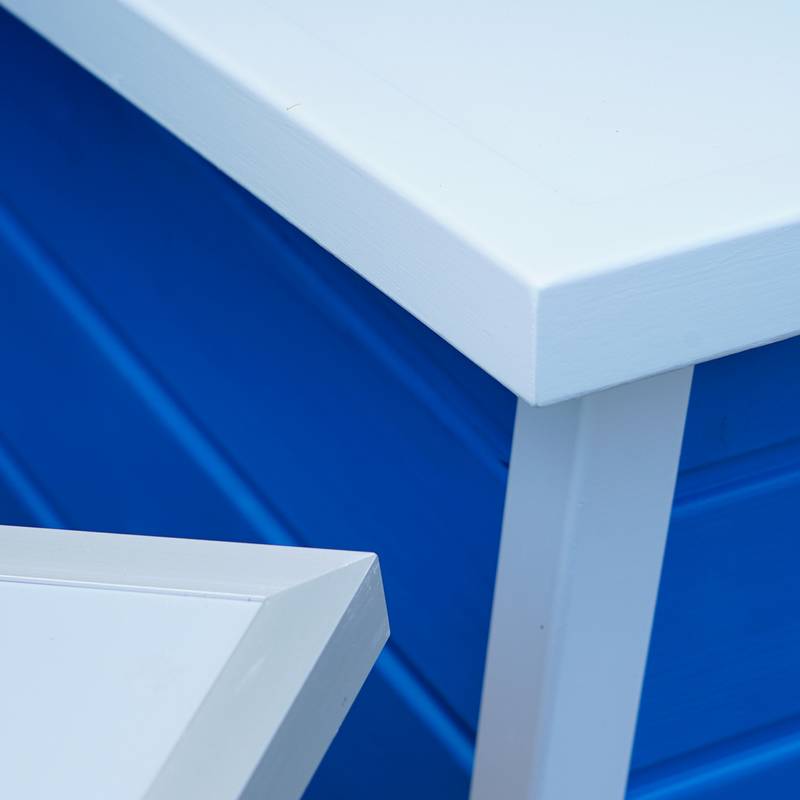 vor dem Zusammenbau gestrichen, damit durch das natürliche "Arbeiten" des Holzes je nach Luftfeuchtigkeit keine unbehandelten Stellen blitzen - auf Wunsch mit Extras