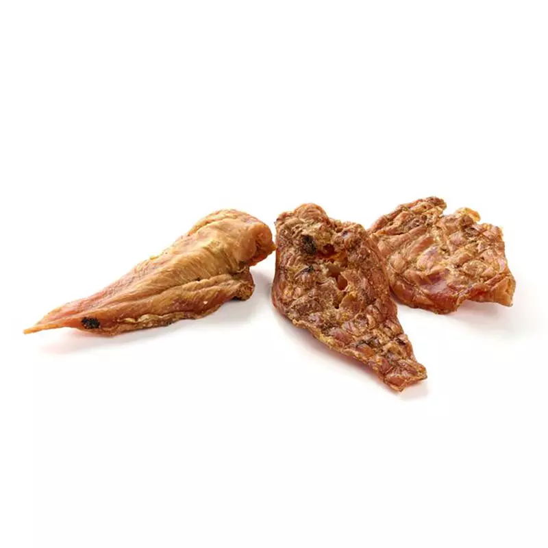 Kauartikel aus Hühnerbrust sind fettarm und bekömmlich, auch für Hunde mit empfindlichem Magen. Je nach Größe des Stücks (und des Hundes) sind diese Trockenfleisch-Stücke eine wunderbare Beschäftigung oder mit einem Happs weg.