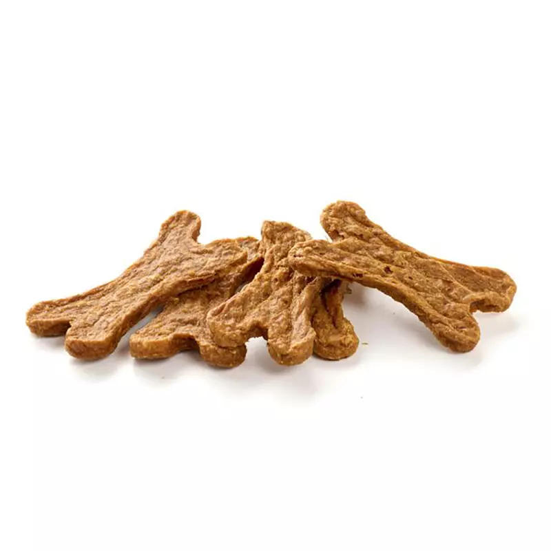 Ein tolles Mitbringsel für Hunde – ohne schlechtes Gewissen: diesen fleischigen Snack aus zerkleinertem und in Knochenform schonend getrocknetem Hähnchenfleisch wird Dein Hund lieben! Mit unter 5% ist er auch für Vierbeiner geeignet, die empfindlich auf allzu fetthaltige Snacks reagieren oder bei denen man auf Gewicht achten muss.