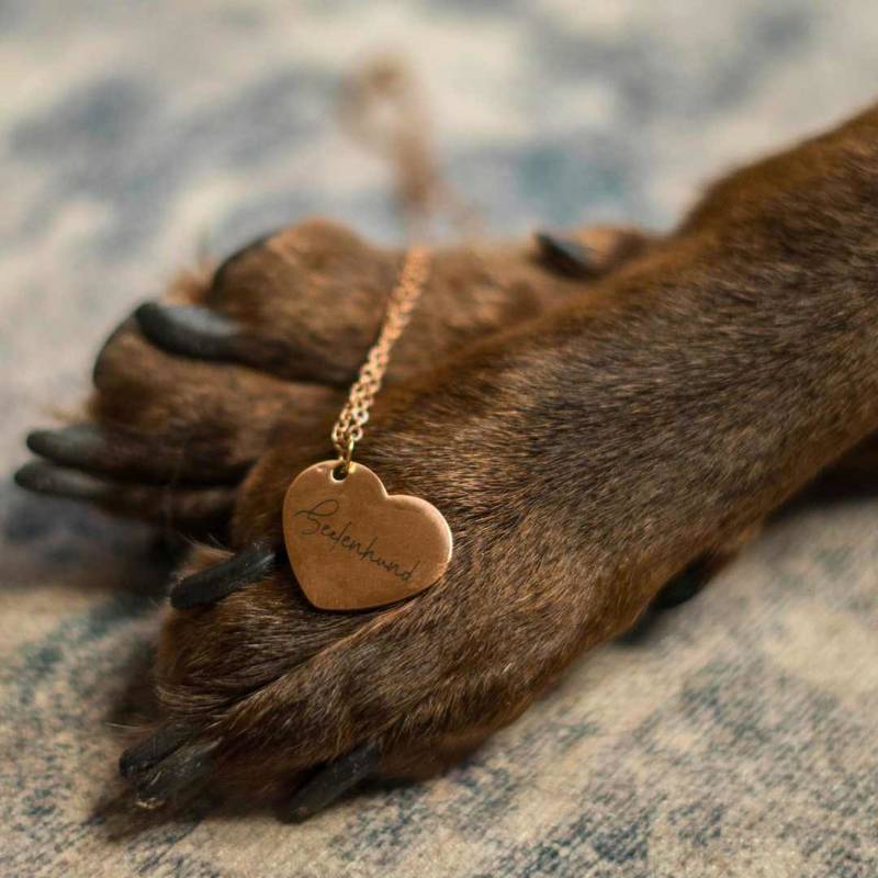 Ein ganz besonderes Geschenk: eine goldene Kette mit individueller Gravur – der Herzenshund verewigt auf einem Schmuckanhänger.
