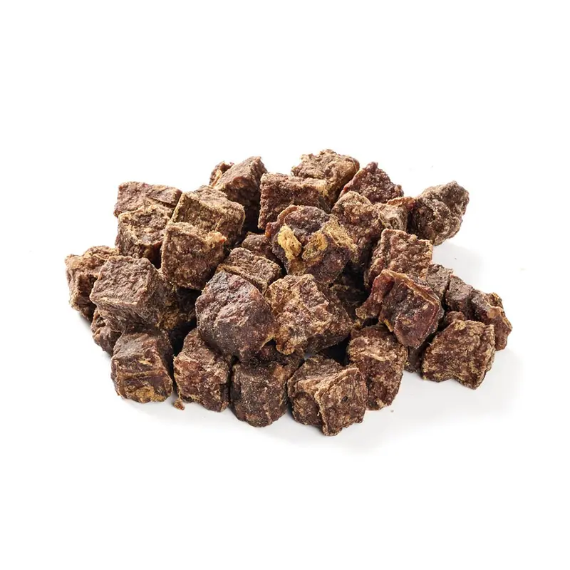 Für Natur-Puristen: die Würfel-Leckerli werden aus dem Wildfleisch geschnitten bzw. aus kleineren Stückchen in Form gepresst und schonend getrocknet. Komplett ohne Zusatzstoffe und natürlich getreidefrei/ glutenfrei.