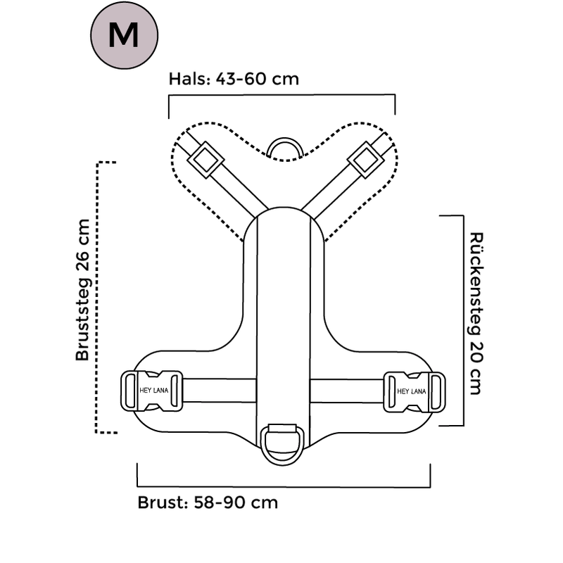 • zwei Ringe zur Befestigung der Leine: am Rücken und an der Brust