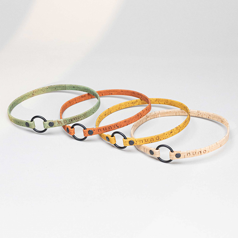 Wir haben oft mit einem sehr fest in Hinterköpfen verankerten Bild von brüchigen, bröselnden Pinnwänden zu kämpfen. Natürlich ist das erst einmal nicht sonderlich vertrauenerweckend, wenn man bedenkt, dass Halsband und Leine in erster Linie der Sicherheit Deines Hundes dienen sollen.  Aber wir können Dich beruhigen: das Korkleder, das in unseren Produkten Verwendung findet, spielt in einer ganz andere Liga. Dank der kompakten Zellstruktur ist es flexibel, abrieb- und kratzfest und eignet sich sogar für Möbel, Kleidung und Taschen!  Doppelt gelegt und vernäht oder in Strängen geflochten entspricht es also jedem erdenklichen Sicherheitsstandard, den man sich für ein Hundehalsband ausdenken könnte.