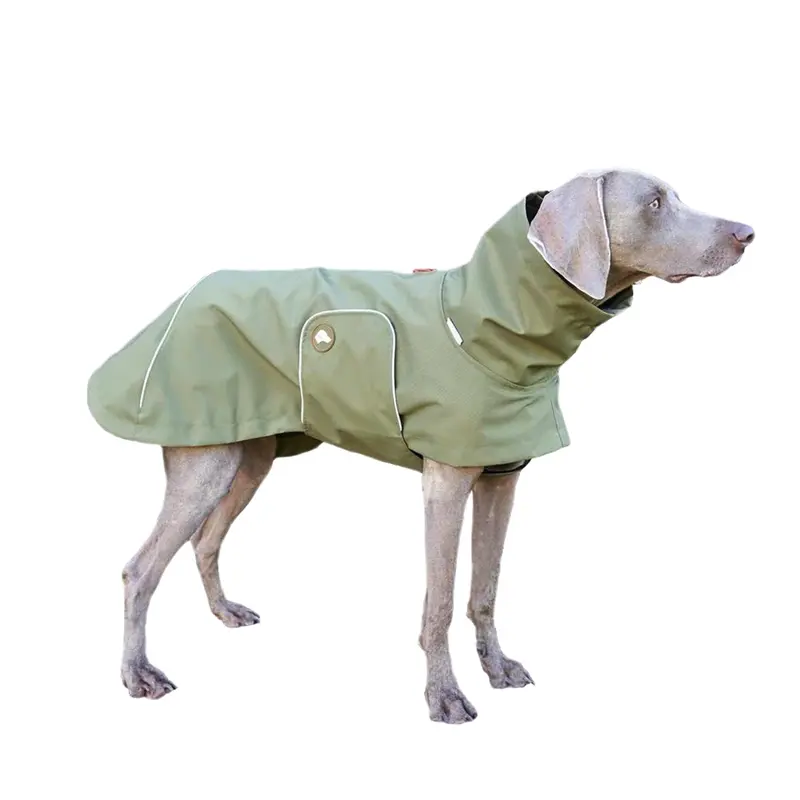 - Der bis 5.000 mm Wassersäule dichte Hundemantel wird in der Größe entsprechend der Rückenlänge des Hundes gewählt.