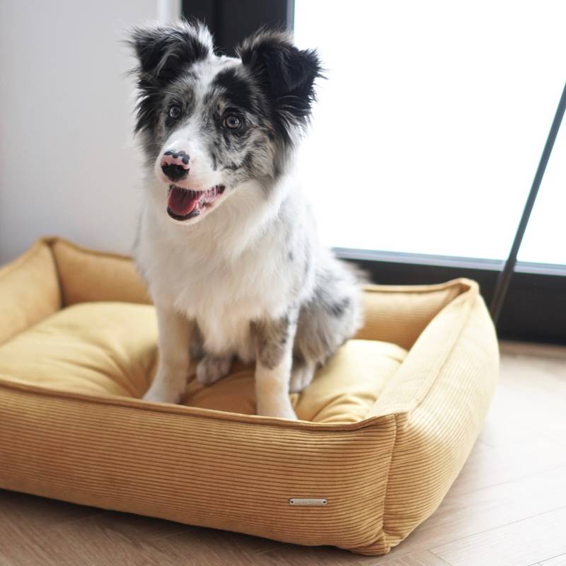 Hundebett Cord gelb – Labbvenn STRIPPO honey