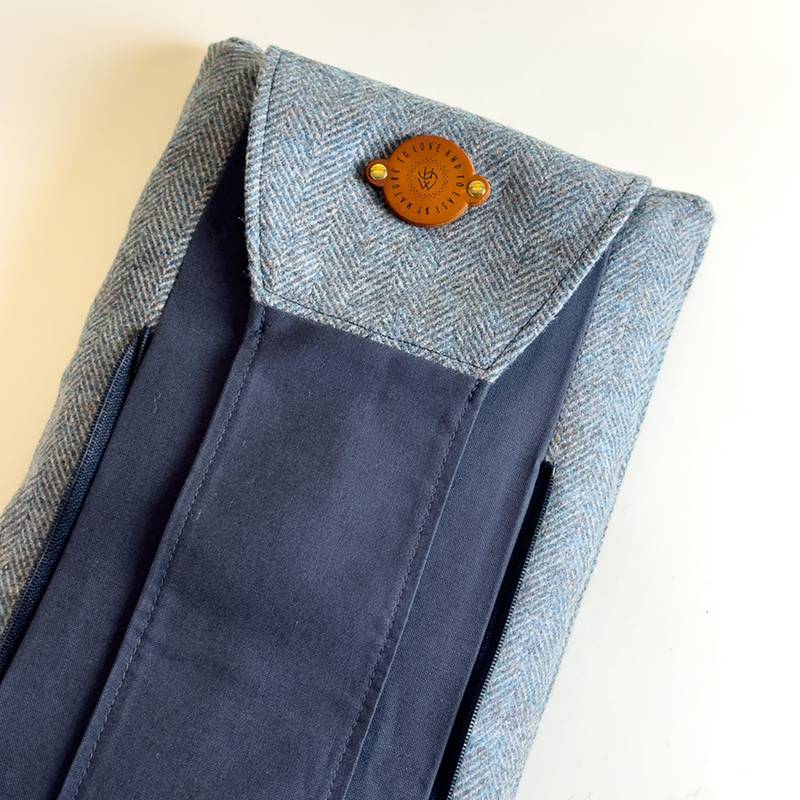 Der Bezug des Hunde-Kopfkissens ist aus hochwertigstem Tweed aus Großbritannien handgenäht in Deutschland.