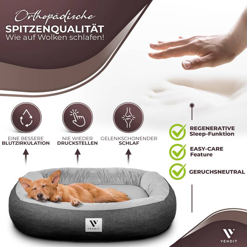 Das orthopädische Hundebett von Vendit ist wirklich pflegeleicht: die Anti-Haar-Beschichtung ermöglicht es Dir, Hundehaare einfach abzusaugen. Leichte Verschmutzungen können mit einem feuchten Tuch entfernt werden. Der Bezug ist abziehbar und für Maschinenwäsche geeignet.