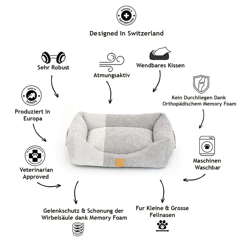 Sowohl die üppig gefüllte Liegefläche als auch der hohe Rand sind mit hochwertigem Memory Foam gefüllt. Dieser passt sich optimal an den Körper Deines Hundes an, stützt seine Gelenke und sorgt für gute Durchblutung.