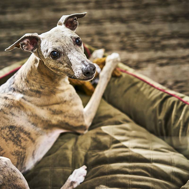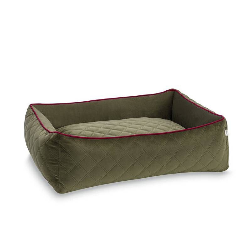 Das komfortable Hundebett mit umlaufendem Rand OXFORD in erdig-warmem Oliv von Laboni.